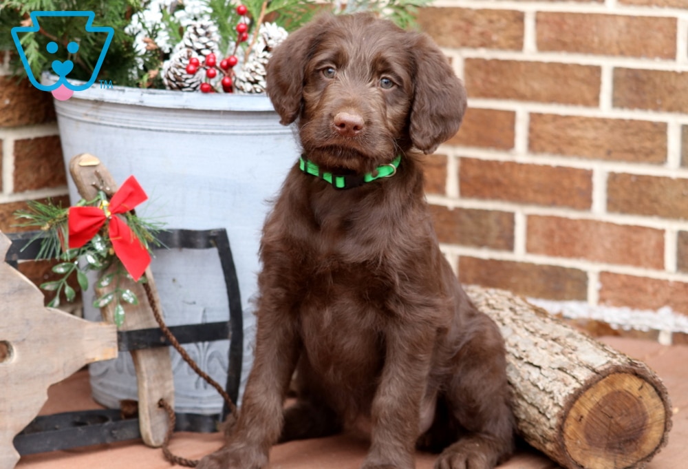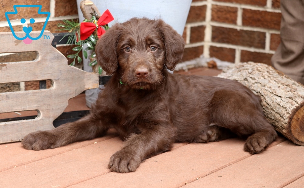 Buttons is a loving Labradoodle with a cheerful personality and a heart full of affection. Exceptionally social, she lights up any room she enters and quickly becomes everyone’s best friend. Buttons especially adores children. She is vet checked, vaccinated, wormed, plus the breeder provides a 1 year genetic health guarantee. Her momma is a Silver Lab (Carla – 75lbs.) & daddy is a Standard Poodle (Golden Sunrise King Kole – 50lbs.). This sweet pooch brings warmth, laughter, and love wherever she goes.