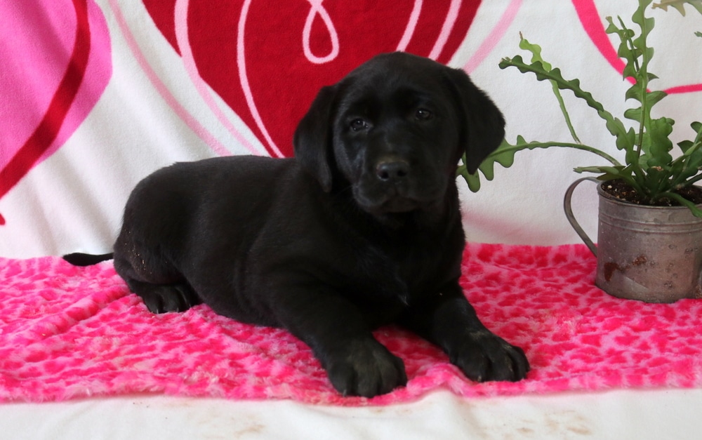 Blossom is a stunning Black Lab with a heart as big as her smile. She’s super social, loves being around people, and thrives on attention and affection. This sweet girl is ACA registered, vet checked, vaccinated, wormed, plus the breeder provides a 1 year genetic health guarantee. Her parents are Kaletta Hope (80lbs.) & Archie Charcoal Splash. Blossom is the kind of pup who fits right in with family life and makes friends everywhere she goes.