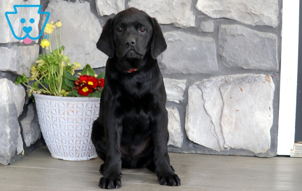 Meet Dougie, a Black Lab with endless charm and a love for life. His favorite thing in the world is spending time with children. Dougie is vet checked, vaccinated, wormed, plus the breeder provides a 1 year genetic health guarantee. His parents are Missy (85lbs.) & Buck (95lbs.). With his playful spirit and loving nature, he brings warmth and laughter to everyone lucky enough to know him.