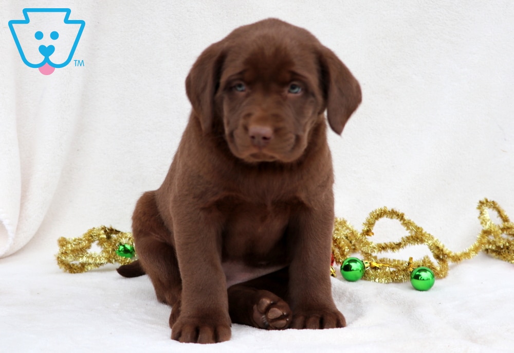 Cami is a lovable, Chocolate Lab who has never met a stranger she can’t win over. Friendly, gentle, endlessly social, and she absolutely adores children. This cutie is vet checked, vaccinated, wormed & health guaranteed by the breeder. Her parents are Walnut (75lbs.) & Chestnut (100lbs.). Cami is the heart-melting chocolate pup you’ll instantly fall in love with.