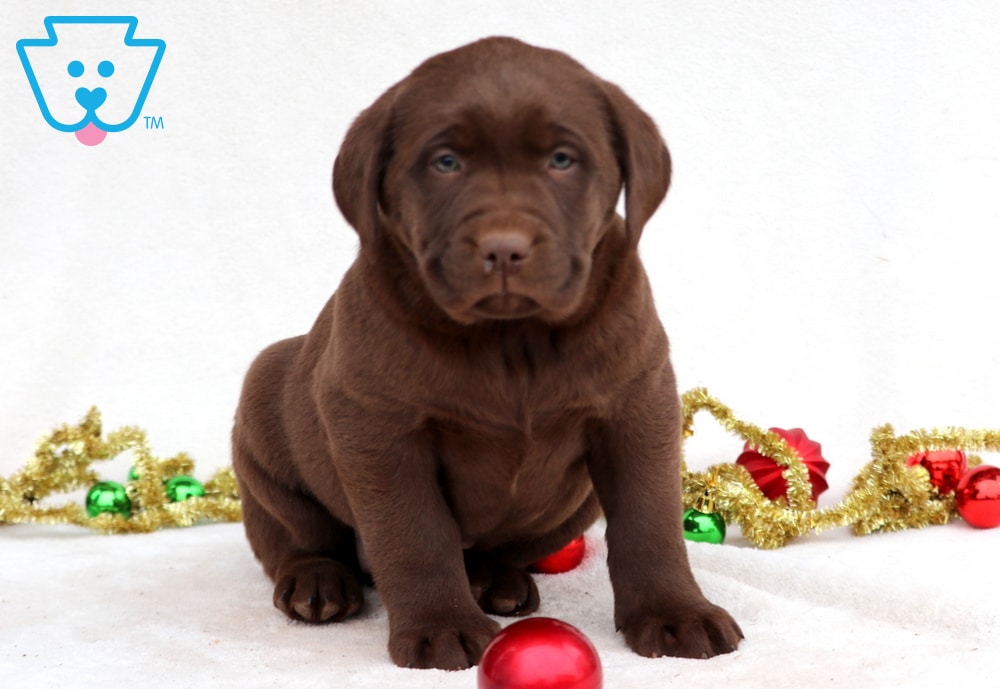Charmy is a lovable, Chocolate Lab who has never met a stranger she can’t win over. Friendly, gentle, endlessly social, and she absolutely adores children. This cutie is vet checked, vaccinated, wormed & health guaranteed by the breeder. Her parents are Walnut (75lbs.) & Chestnut (100lbs.). Charmy is the heart-melting chocolate pup you’ll instantly fall in love with.