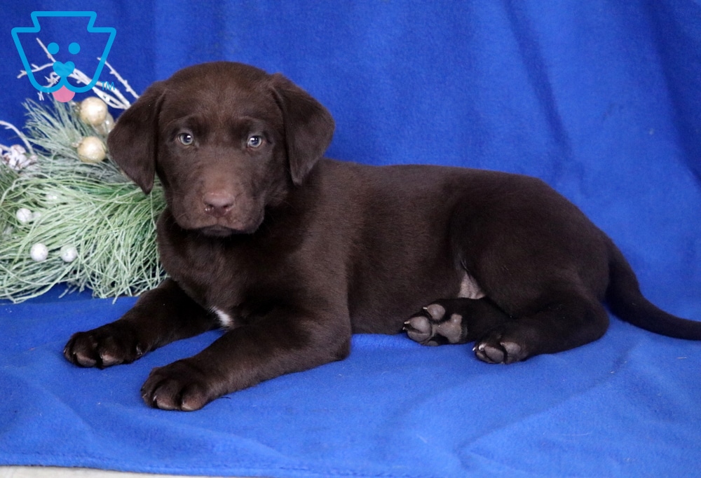 Domino is a sweet Chocolate Lab with a lovable personality and a heart of gold. He’s as social as can be and absolutely loves playing with kids. Domino is AKC registered, vet checked, vaccinated, wormed, plus the breeder provides a 1 year genetic health guarantee. His parents are Sheila & Stormy. This cutie is the kind of companion who makes everyone feel like a best friend.