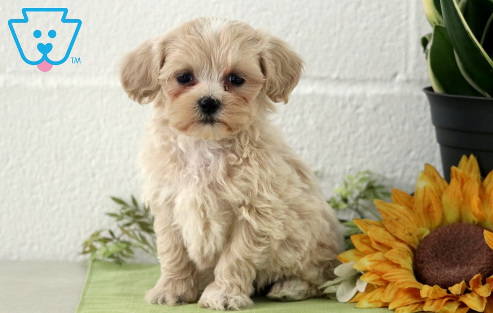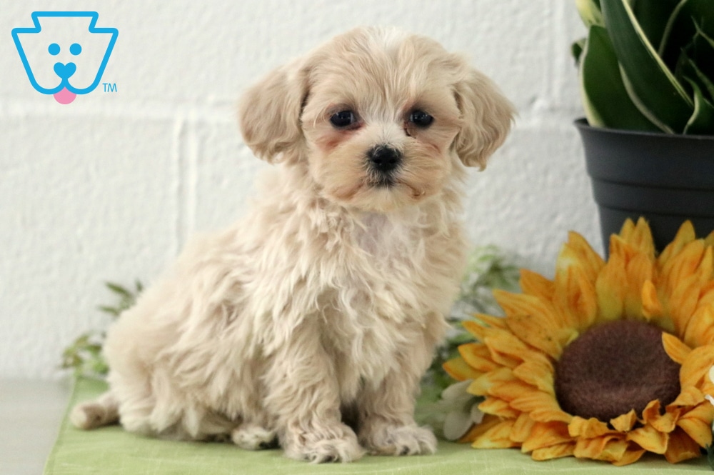 Petey is a sweet and affectionate Maltipoo. He’s the kind of dog who makes friends everywhere he goes. Social and playful, Petey thrives on being around others and loves nothing more than joining in on games of fetch or tag with children. This cutie is vet checked, vaccinated, wormed, plus the breeder provides a 1 year genetic health guarantee. His momma is a Maltese (Bubbles – 9lbs.) & daddy is a Poodle (Conrad – 9lbs.). His gentle, loving nature makes him a wonderful companion for families.