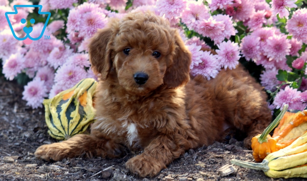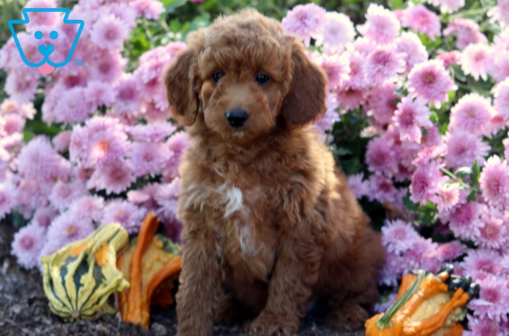 Meet Chaz, a sweet and friendly Mini Goldendoodle. He’s incredibly social — the kind of pup who greets everyone like an old friend and can brighten any room with his wagging tail. Chaz especially adores kids and loves joining in on their games, walks, and cuddles. This cutie is vet checked, vaccinated, wormed, plus the breeder provides a 1 year genetic health guarantee. His momma is a Mini Goldendoodle (Penny – 25lbs.) & daddy is a Mini Poodle (Jason – 12lbs.). His gentle nature and happy spirit make him the perfect family companion.