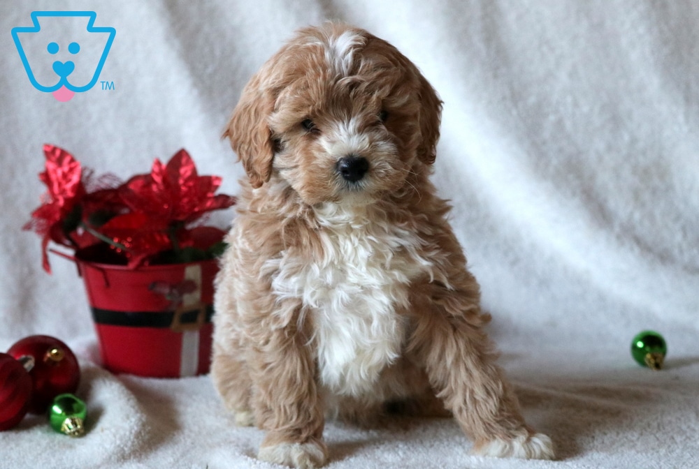 Chex is an adorable Mini Goldendoodle puppy with a heart full of sweetness and a personality that shines! He has been raised around children, so he’s used to love, cuddles, and playtime. This cutie is vet checked, vaccinated, wormed, and comes with a 1 year genetic health guarantee that is provided by the breeder. His parents are Betty (Mini Goldendoodle – 28lbs) & Chief (Mini Poodle – 15lbs). If you are ready to welcome a playful companion & family-friendly puppy into your home, Chex is the perfect fit!