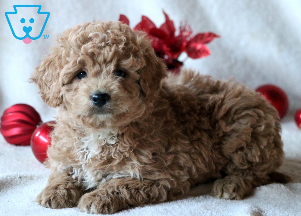Chops is an adorable Mini Goldendoodle puppy with a heart full of sweetness and a personality that shines! He has been raised around children, so he’s used to love, cuddles, and playtime. This cutie is vet checked, vaccinated, wormed, and comes with a 1 year genetic health guarantee that is provided by the breeder. His parents are Betty (Mini Goldendoodle – 28lbs) & Chief (Mini Poodle – 15lbs). If you are ready to welcome a playful companion & family-friendly puppy into your home, Chops is the perfect fit!