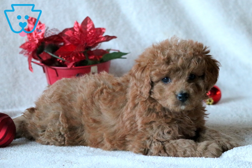 Coco is an adorable Mini Goldendoodle puppy with a heart full of sweetness and a personality that shines! She has been raised around children, so she’s used to love, cuddles, and playtime. This cutie is vet checked, vaccinated, wormed, and comes with a 1 year genetic health guarantee that is provided by the breeder. Her parents are Betty (Mini Goldendoodle – 28lbs) & Chief (Mini Poodle – 15lbs). If you are ready to welcome a playful companion & family-friendly puppy into your home, Coco is the perfect fit!