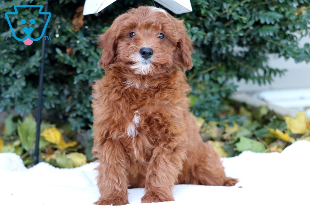 Dee is an adorable Mini Goldendoodle puppy with a heart full of love and a tail that never stops wagging! She’s super social and loves everyone she meets. Dee is well-socialized, raised with children, and ready to bring joy to her forever home. This cutie is vet checked, vaccinated, wormed, and comes with a 1 year genetic health guarantee that is provided by the breeder. Her momma is Sunshine (Mini Goldendoodle – 25lbs) & daddy is a Mini Poodle. If you’re looking for a friendly puppy who will be your loyal companion, Dee is the one for you!