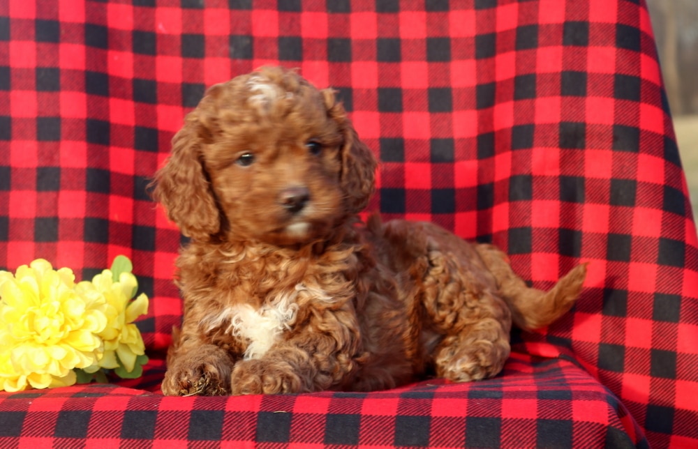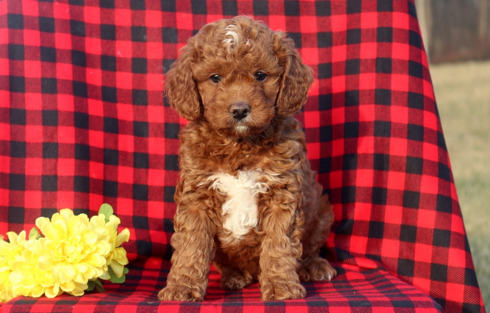 Lee is a sweet Mini Goldendoodle who loves everyone he meets. Social, playful, and great with kids, he’s always ready to share affection and fun. He is vet checked, vaccinated, wormed, plus the breeder provides a 1 year genetic health guarantee. His momma is a Mini Goldendoodle (Beauty – 28lbs.) & daddy is a Mini Poodle (Cheif – 15lbs.). Lee’s gentle, friendly nature makes him a perfect companion for families.