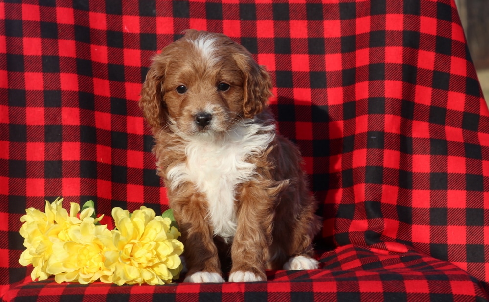 Louie is a sweet Mini Goldendoodle who loves everyone he meets. Social, playful, and great with kids, he’s always ready to share affection and fun. He is vet checked, vaccinated, wormed, plus the breeder provides a 1 year genetic health guarantee. His momma is a Mini Goldendoodle (Beauty – 28lbs.) & daddy is a Mini Poodle (Cheif – 15lbs.). Louie’s gentle, friendly nature makes him a perfect companion for families.
