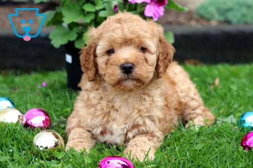 Say hello to Monty, a Mini Goldendoodle puppy with a big personality and an even bigger heart! This handsome boy has been raised with kids, so he’s wonderfully social, playful, and loves making new friends. He is vet checked, vaccinated, wormed, and comes with a 1 year genetic health guarantee that is provided by the breeder. His parents are Polly (Mini Goldendoodle – 25lbs) & Jaron (Mini Poodle – 12lbs). If you’ve been searching for a puppy who will bring joy, laughter, and lots of love into your home, Monty is ready to be your new best friend.