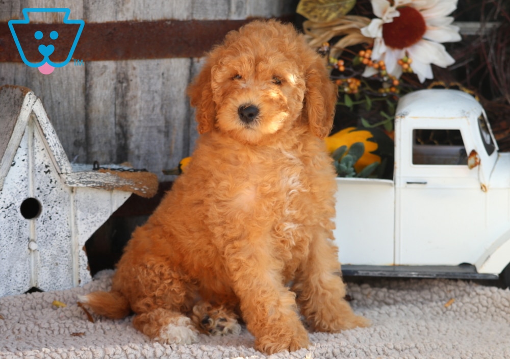 Mini Goldendoodles are delightful hybrids of Poodles and Golden Retrievers. Their golden, curly coats and hypoallergenic nature make them perfect for families and allergy sufferers. Intelligent, trainable, and friendly, these playful pups thrive on social interaction. Recognized by the ACHC, they offer a blend of charm and practicality with minimal shedding and moderate grooming needs, ensuring a loving companion for years to come.