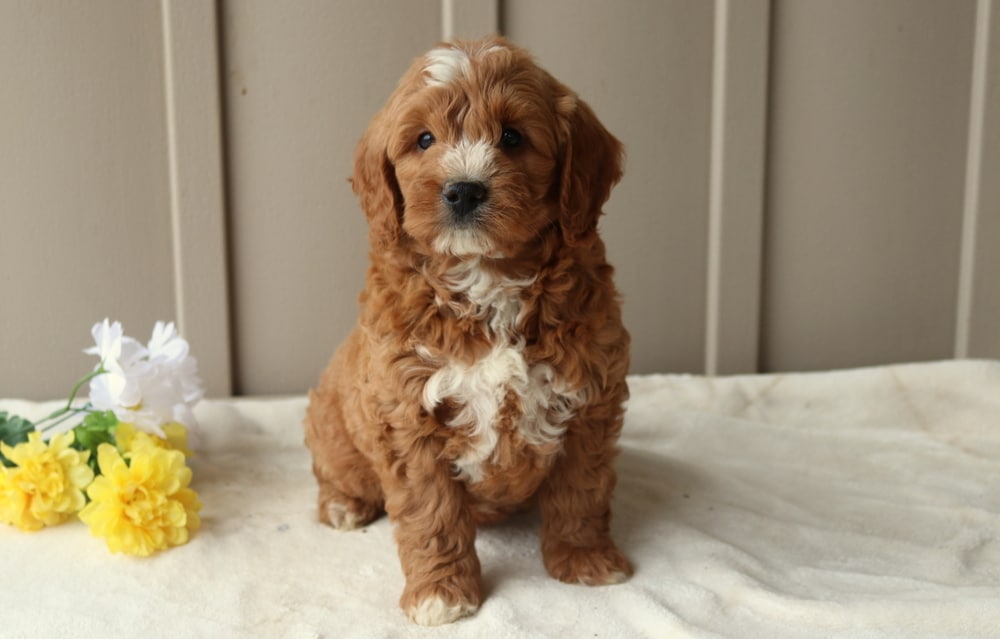 With a playful spirit and a heart full of friendliness, Raz the Mini Goldendoodle is always ready to make a new friend. He’s incredibly social and especially enjoys spending time with kids. This cutie is vet checked, vaccinated, wormed, plus the breeder provides a 1 year genetic health guarantee. His momma is a Mini Goldendoodle (Buttercup – 35lbs.) & daddy is a Mini Poodle (Cheif – 15lbs.). Raz’s cheerful personality and love for people make him a wonderful companion.