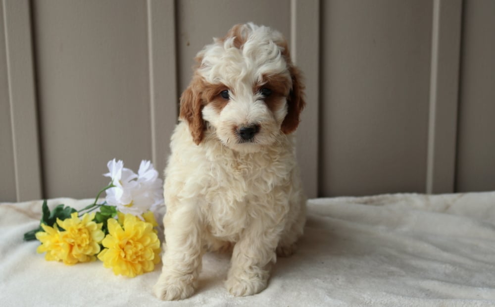 With a playful spirit and a heart full of friendliness, Rex the Mini Goldendoodle is always ready to make a new friend. He’s incredibly social and especially enjoys spending time with kids. This cutie is vet checked, vaccinated, wormed, plus the breeder provides a 1 year genetic health guarantee. His momma is a Mini Goldendoodle (Buttercup – 35lbs.) & daddy is a Mini Poodle (Cheif – 15lbs.). Rex’s cheerful personality and love for people make him a wonderful companion.