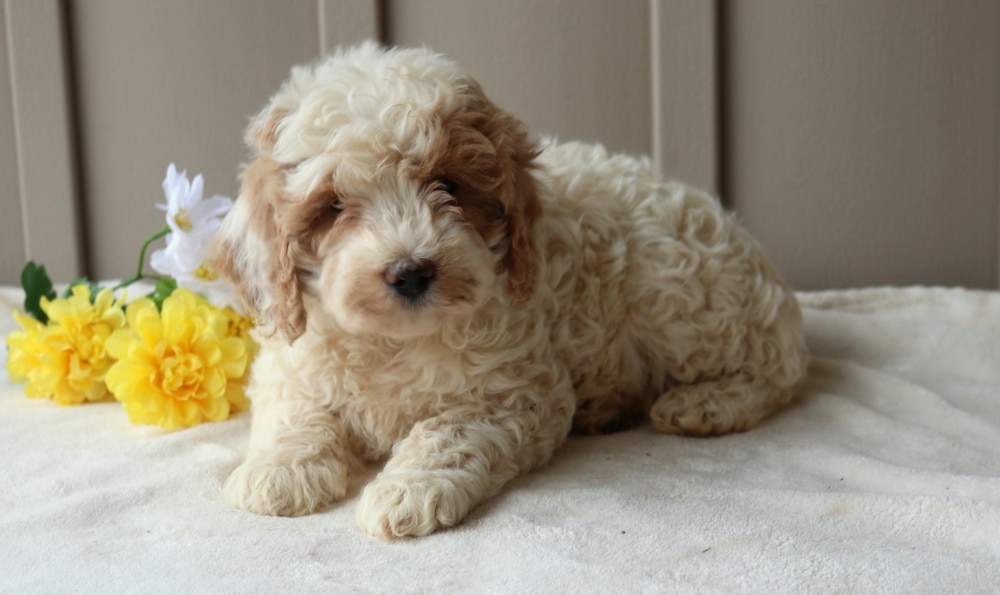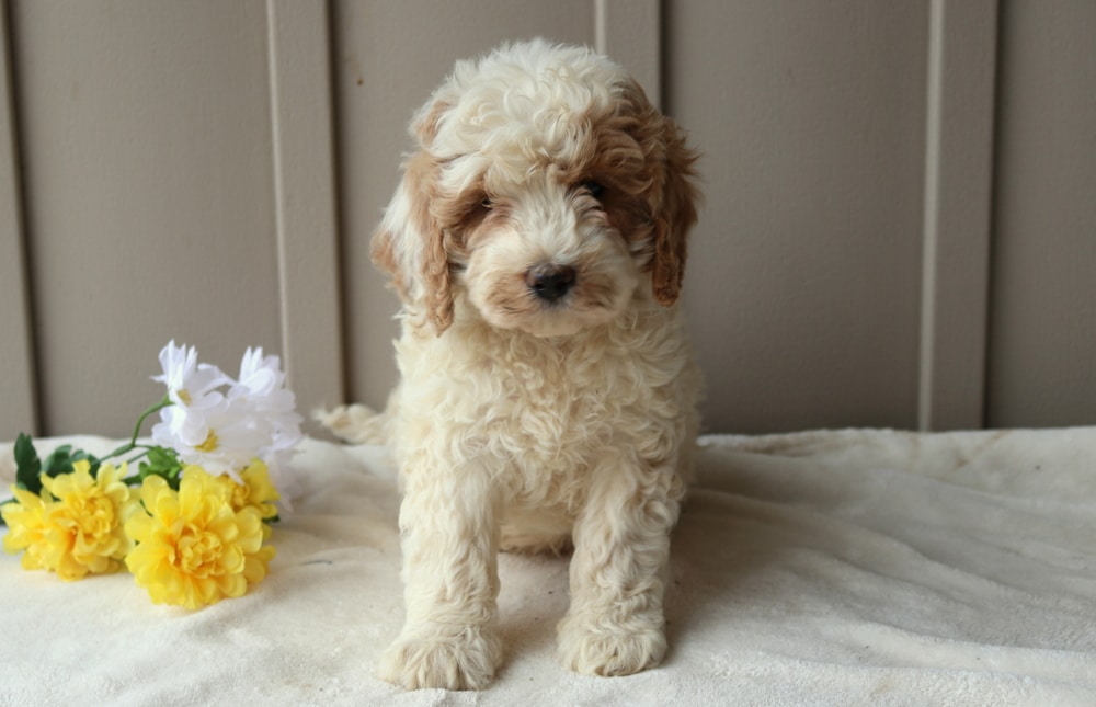With a playful spirit and a heart full of friendliness, Rolo the Mini Goldendoodle is always ready to make a new friend. He’s incredibly social and especially enjoys spending time with kids. This cutie is vet checked, vaccinated, wormed, plus the breeder provides a 1 year genetic health guarantee. His momma is a Mini Goldendoodle (Buttercup – 35lbs.) & daddy is a Mini Poodle (Cheif – 15lbs.). Rolo’s cheerful personality and love for people make him a wonderful companion.