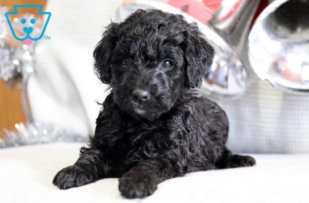 Thunder is incredibly social and loves being around people of all ages. She especially enjoys playing with kids, where her gentle nature and playful energy truly shine. This cutie is vet checked, vaccinated, wormed, plus the breeder provides a 1 year genetic health guarantee. Her momma is a Mini Goldendoodle (Roxie – 20lbs.) & daddy is a Standard Poodle (Prince – 45lbs.). Thunder brings joy wherever she goes.