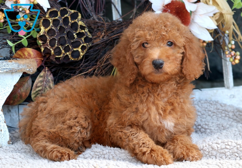 Tia is a precious Mini Goldendoodle puppy with the happiest personality! She’s incredibly social, loves everyone she meets, and is always ready for playtime or cuddles. This cutie is vet checked, vaccinated, wormed, and comes with a 1 year genetic health guarantee that is provided by the breeder. Her parents are Penny (Mini Goldendoodle – 30lbs) & Jake (Mini Poodle – 12lbs). Tia has been well-socialized from day one making her the perfect addition to any loving family. Don’t miss out on this Mini Goldendoodle puppy!