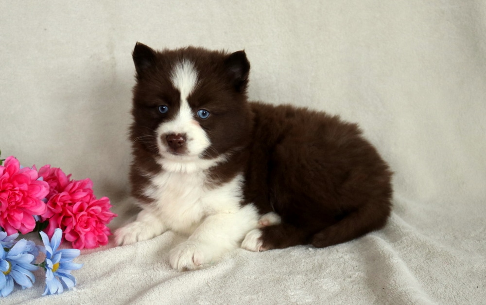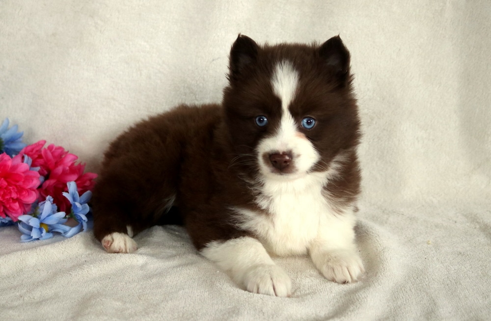 Baby is a charming Pomsky with a heart full of love and a personality that shines! She’s a true social butterfly who absolutely loves playing with children. This cutie pie is vet checked, vaccinated, wormed, plus the breeder provides a 1 year genetic health guarantee. Her momma is a Pomsky (Dorthy – 17lbs.) & daddy is a Pomsky (Domino – 20lbs.). If you’re looking for a loving, outgoing pup who will bring joy, laughter, and lots of cuddles into your home, Baby is your girl!
