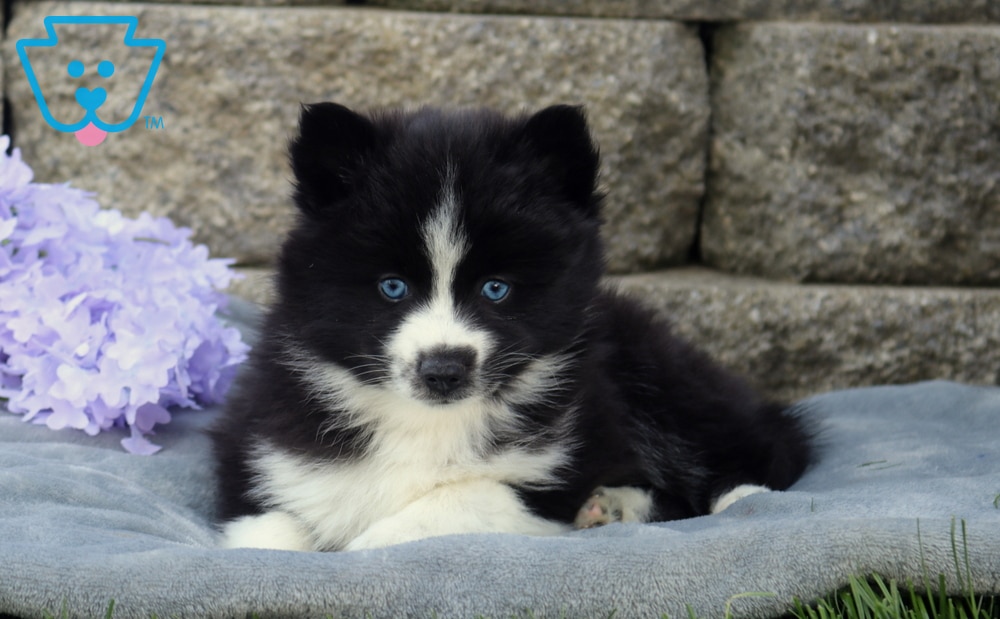 Kit-Kat is an outstanding Pomsky with a vibrant personality and an irresistible charm. He’s incredibly social and loves being the center of attention, especially when kids are around. This cutie pie is vet checked, vaccinated, wormed, plus the breeder provides a 1 year genetic health guarantee. His parents are both Pomskies; momma is Daisy (15lbs.) & daddy is 20lbs. Kit-Kat brings endless smiles and laughter wherever he goes.
