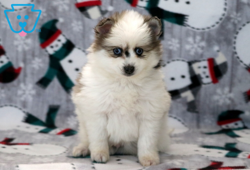 Parker is an adorable Pomsky puppy with a fun, social personality that shines the moment you meet him. He loves being around people and enjoys playtime, cuddles, and all the attention he can get. This cutie is vet checked, vaccinated, wormed, and comes with a 1 year genetic health guarantee that is provided by the breeder. Both parents are Pomskies weighing between 10 – 15lbs. With his charming looks and loving nature, Parker would make a wonderful addition to any family looking for a happy, affectionate puppy.