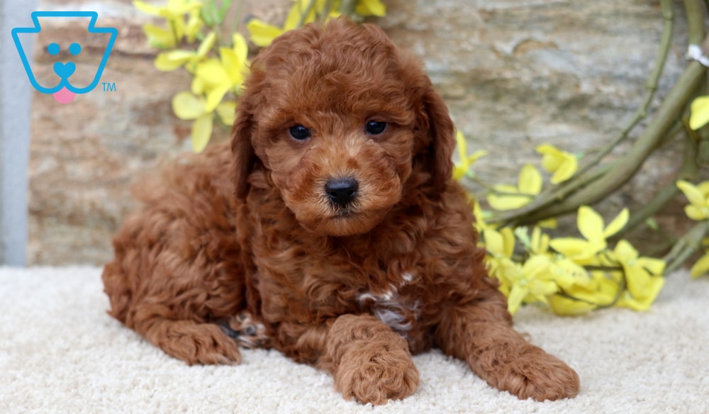 Meet Ashton, an outstanding Mini Poodle with a big personality and an even bigger heart! This social butterfly loves being the center of attention and making new friends wherever he goes. Playtime is his favorite time—especially when it involves children! This cutie is ACA registered, vet checked, vaccinated, wormed, plus the breeder provides a 1 year genetic health guarantee. His parents are Charming Violet (12lbs.) & Rusty Red (12lbs.). Ashton’s cheerful spirit, intelligence, and affectionate nature make him the perfect companion for families looking for a fun-loving, loyal friend.
