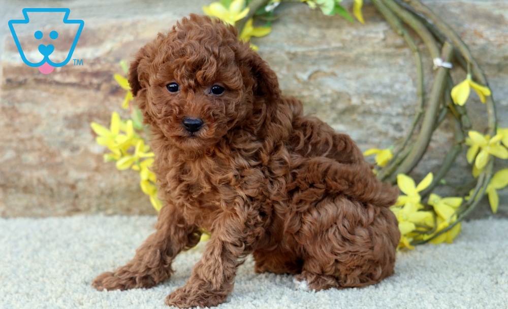 Dixie is an adorable Mini Poodle with a heart full of love. With her soft, curly coat and soulful eyes, she’s the definition of cute. Dixie is well-socialized with children, making her a perfect companion for families. She is ACA registered, vet checked, vaccinated, wormed, plus the breeder provides a 1 year genetic health guarantee. Her parents are Charming Tiffany (12lbs.) & Rusty Red (12lbs.). Smart and gentle, this cutie is ready to bring joy to her forever home!