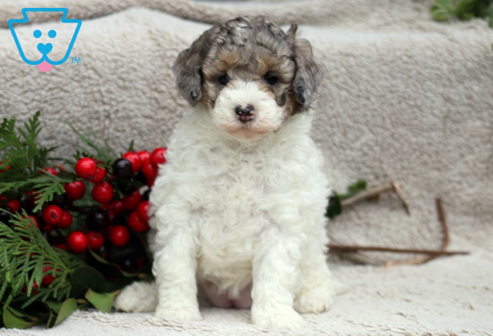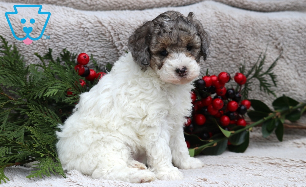 Dove is a gorgeous Mini Poodle with a personality as bright as her curly coat. Full of confidence and charm, she greets everyone like an old friend and never misses a chance to make a new one. Super social by nature, Dove thrives in the company of people—especially kids. She is vet checked, vaccinated, wormed, plus the breeder provides a 1 year genetic health guarantee. Her parents are Teresa (25lbs.) & Skippy (11lbs.). A true sweetheart with a playful sparkle, she’s the kind of dog that instantly steals hearts.