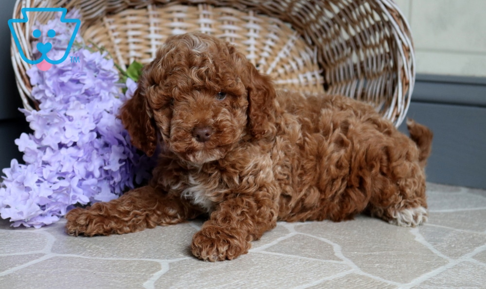 Sunny is a gorgeous Mini Poodle with a charming personality to match her looks. She’s incredibly social and absolutely adores children. This cutie pie is ACA registered, vet checked, vaccinated, wormed, plus the breeder provides a 1 year genetic health guarantee. Her parents are Twila Rose (12lbs.) & Sunset Phil (15lbs.). Sweet, lively, and affectionate, Sunny is the kind of dog who quickly becomes the heart of the family.