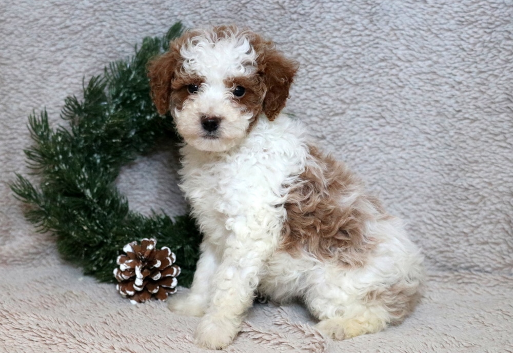 Victor is an adorable Mini Poodle with a heart as fluffy as his curls! This little guy is a true social butterfly — he loves making new friends wherever he goes and is especially fond of children. He is AKC registered, vet checked, vaccinated, wormed, plus the breeder provides a 1 year genetic health guarantee. His parents are Layna (13lbs) & Landon (14lbs). With Victor’s sweet nature and playful personality, he’s the perfect companion for families, big or small.