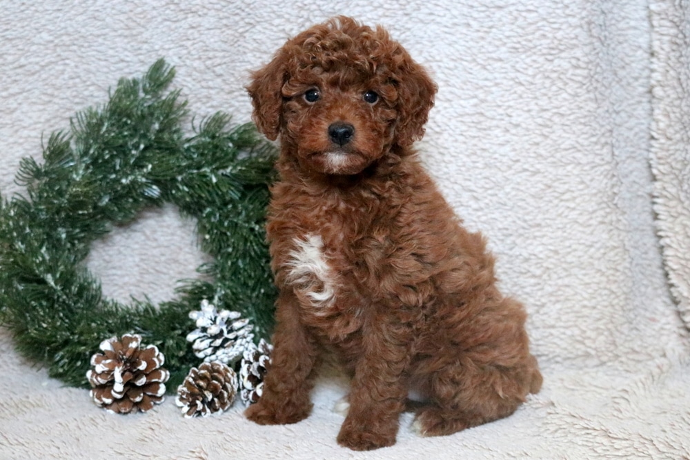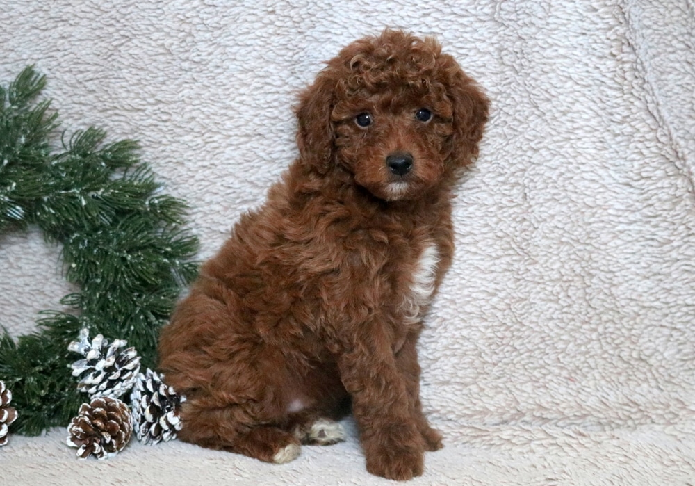 Vince is an adorable Mini Poodle with a heart as fluffy as his curls! This little guy is a true social butterfly — he loves making new friends wherever he goes and is especially fond of children. He is AKC registered, vet checked, vaccinated, wormed, plus the breeder provides a 1 year genetic health guarantee. His parents are Layna (13lbs) & Landon (14lbs). With Vince’s sweet nature and playful personality, he’s the perfect companion for families, big or small.