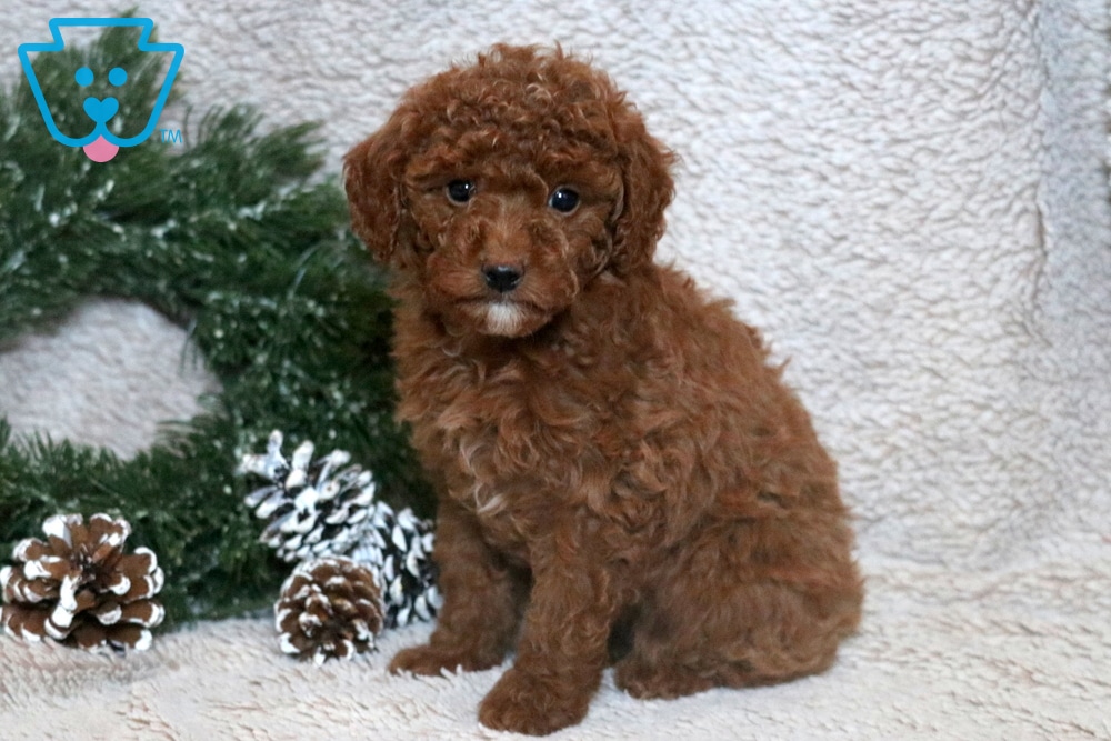 Violet is an adorable Mini Poodle with a heart as fluffy as her curls! This little gal is a true social butterfly — she loves making new friends wherever she goes and is especially fond of children. She is AKC registered, vet checked, vaccinated, wormed, plus the breeder provides a 1 year genetic health guarantee. Her parents are Layna (13lbs) & Landon (14lbs). With Violet’s sweet nature and playful personality, she’s the perfect companion for families, big or small.