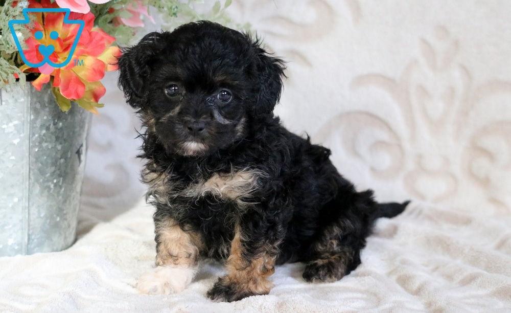 Dakota is a sweet and lovable Poodle Mix with a personality that instantly wins people over. Friendly and outgoing, she’s incredibly social and absolutely adores playing with kids. She is vet checked, vaccinated, wormed, plus the breeder provides a 1 year genetic health guarantee. Her momma is a Blue Merle Bichpoo (Kisses – 13lbs.) & daddy is a Blue Merle Cavalier King Charles Spaniel (Ringo – 14lbs.). Dakota brings happiness, warmth, and a playful spark to every moment.
