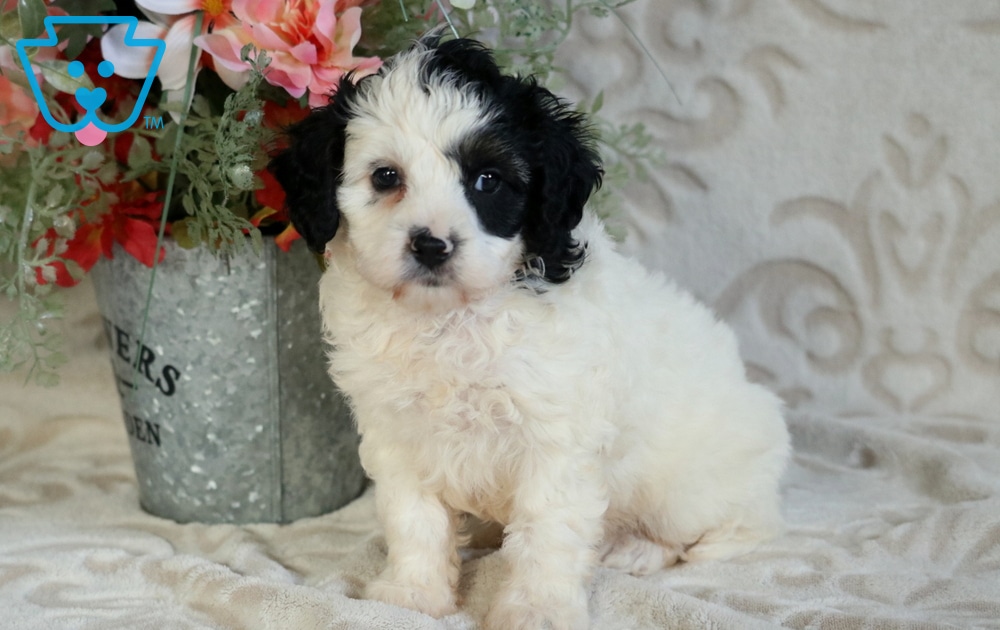 Dash is a sweet and lovable Poodle mix with a personality that instantly wins people over. Friendly and outgoing, he’s incredibly social and absolutely adores playing with kids. He is vet checked, vaccinated, wormed, plus the breeder provides a 1 year genetic health guarantee. His momma is a Blue Merle Bichpoo (Kisses – 13lbs.) & daddy is a Blue Merle Cavalier King Charles Spaniel (Ringo – 14lbs.).Dash brings happiness, warmth, and a playful spark to every moment.