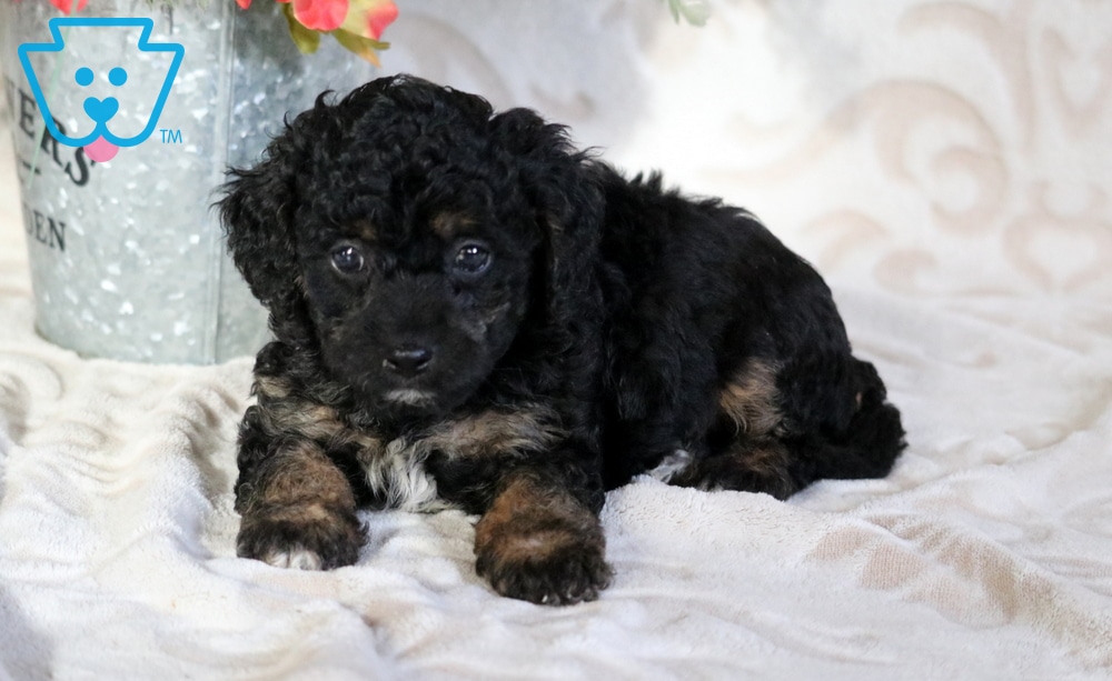 Duke is a sweet and lovable Poodle mix with a personality that instantly wins people over. Friendly and outgoing, he’s incredibly social and absolutely adores playing with kids. He is vet checked, vaccinated, wormed, plus the breeder provides a 1 year genetic health guarantee. His momma is a Blue Merle Bichpoo (Kisses – 13lbs.) & daddy is a Blue Merle Cavalier King Charles Spaniel (Ringo – 14lbs.).Duke brings happiness, warmth, and a playful spark to every moment.