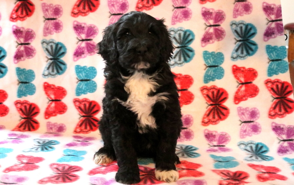Squishy is a total sweetheart with a soft, happy personality. This adorable Poodle Mix is super social and absolutely lights up around people, especially children. He is CKC registered, vet checked, vaccinated, wormed, plus the breeder provides a 1 year genetic health guarantee. His momma is a Portuguese Water Dog (Luna – 65lbs.) & daddy is a Standard Poodle (Jack – 65lb.). Squishy is the kind of pup who steals hearts the moment you meet him.