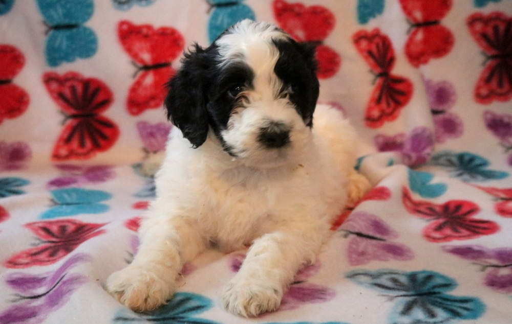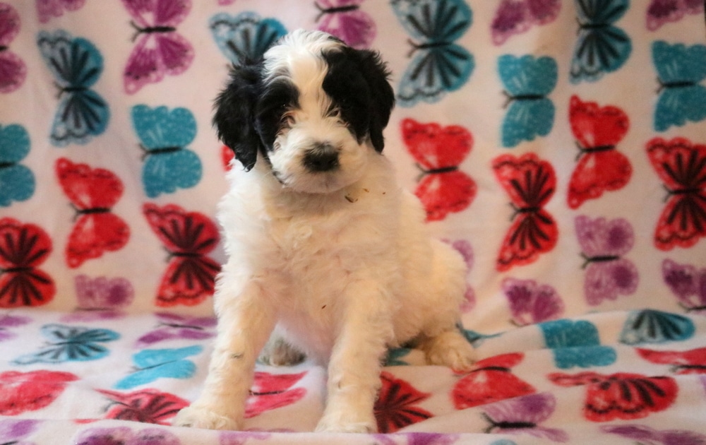 Sweetie is a total sweetheart with a soft, happy personality. This adorable Poodle Mix is super social and absolutely lights up around people, especially children. She is CKC registered, vet checked, vaccinated, wormed, plus the breeder provides a 1 year genetic health guarantee. Her momma is a Portuguese Water Dog (Luna – 65lbs.) & daddy is a Standard Poodle (Jack – 65lb.). Sweetie is the kind of pup who steals hearts the moment you meet her.