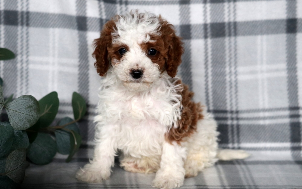 Jace is a super social Cavapoo with a heart as big as his fluffy smile! This lovable little guy thrives on attention and absolutely loves playing with children. He is vet checked, vaccinated, wormed, plus the breeder provides a 1 year genetic health guarantee. His momma is a Cavapoo (Desi – 15lbs.) & daddy is a Poodle (Earl – 12lbs.). Jace makes every moment brighter and every day a little more fun.