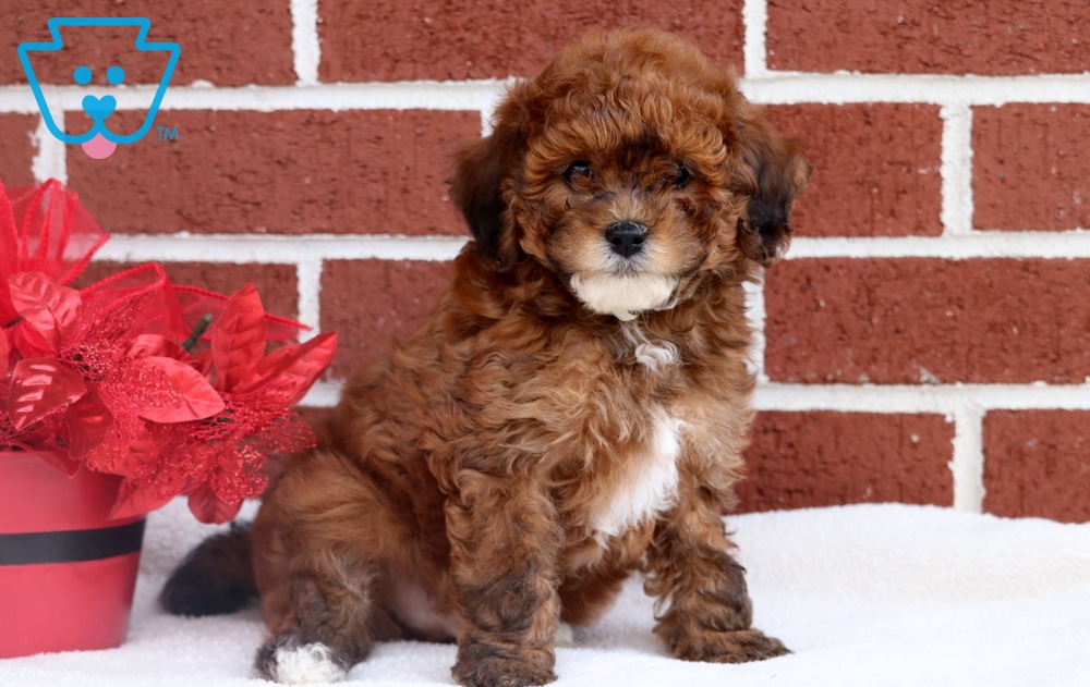 Jasper is an irresistibly cute Toy Poodle with a heart as big as his fluffy curls. Social to his core, Jasper loves meeting new people and never misses a chance to make a friend. He’s especially fond of kids, happily joining in their games. He is ACA registered, vet checked, vaccinated, wormed, plus the breeder provides a 1 year genetic health guarantee. His momma is a Mini Poodle (Tina – 10lbs.) & daddy is a Toy Poodle (Ricky – 8lbs.). This sweet pea brings joy wherever he goes.