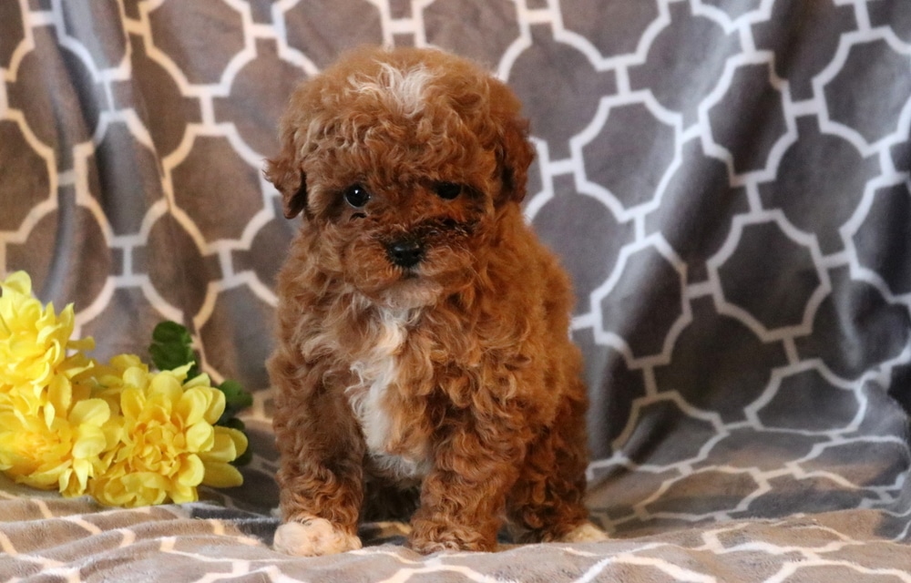 Riley is an adorable Toy Poodle. Social and loving, she has a special fondness for children. This cutie is AKC registered, vet checked, vaccinated, wormed, plus the breeder provides a 1 year genetic health guarantee. Her parents are Twinkle (11lbs.) & Tiny Tim (4lbs.). Riley brings joy and laughter wherever she goes.