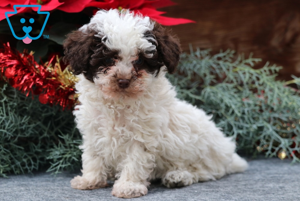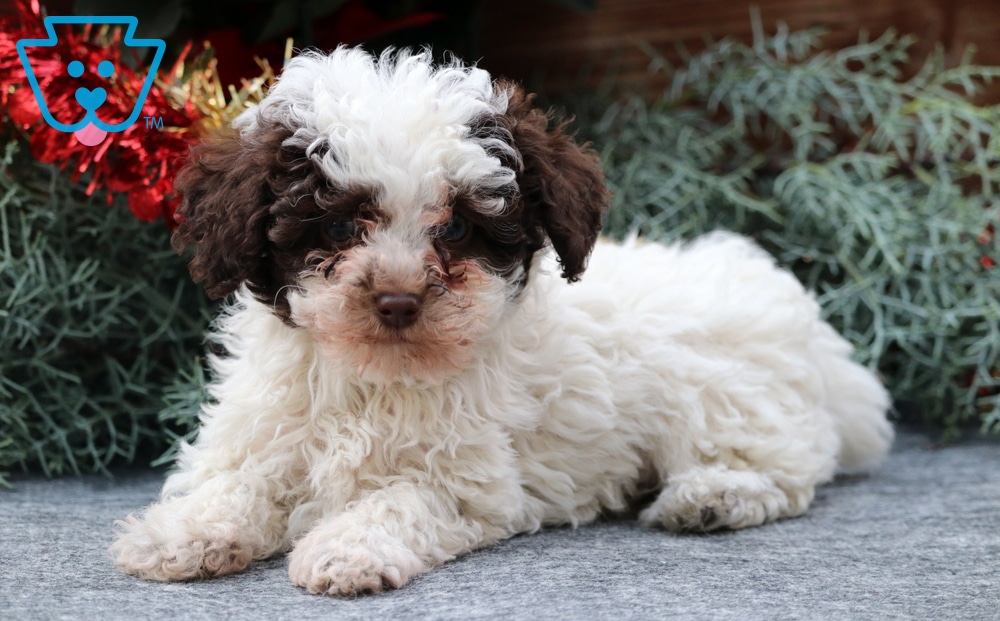Sebastian is a handsome Toy Poodle with a charming personality and an irresistible smile. As social as can be, he loves meeting new people and never misses a chance to make a new friend. Playtime with kids is his absolute favorite. This cutie is AKC registered, vet checked, vaccinated, wormed, plus the breeder provides a 1 year genetic health guarantee. His parents are Button (8lbs.) & Shadow (6lbs.). With his playful energy and friendly nature, Sebastian brings joy and excitement to every moment.