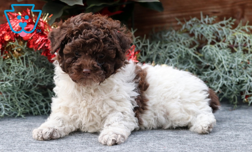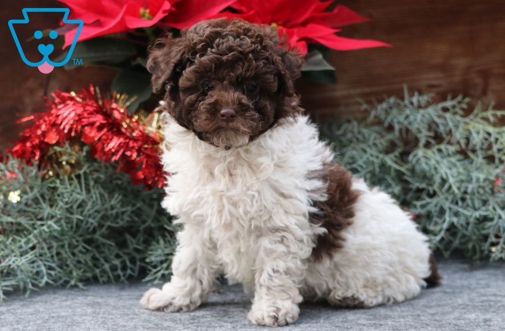 Sneakers is a handsome Toy Poodle with a charming personality and an irresistible smile. As social as can be, he loves meeting new people and never misses a chance to make a new friend. Playtime with kids is his absolute favorite. This cutie is AKC registered, vet checked, vaccinated, wormed, plus the breeder provides a 1 year genetic health guarantee. His parents are Button (8lbs.) & Shadow (6lbs.). With his playful energy and friendly nature, Sneakers brings joy and excitement to every moment.
