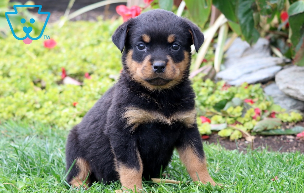 Sara is a sweet and gentle Rottweiler with a big heart and an even bigger smile. She’s wonderfully social and loves being around people, especially kids! This cutie is AKC registered, vet checked, vaccinated, wormed, plus the breeder provides a 1 year genetic health guarantee. Her parents are Darla Mae (110lbs.) & Rocky (115lbs.). Sara makes the perfect companion for families looking for a loyal and affectionate friend.