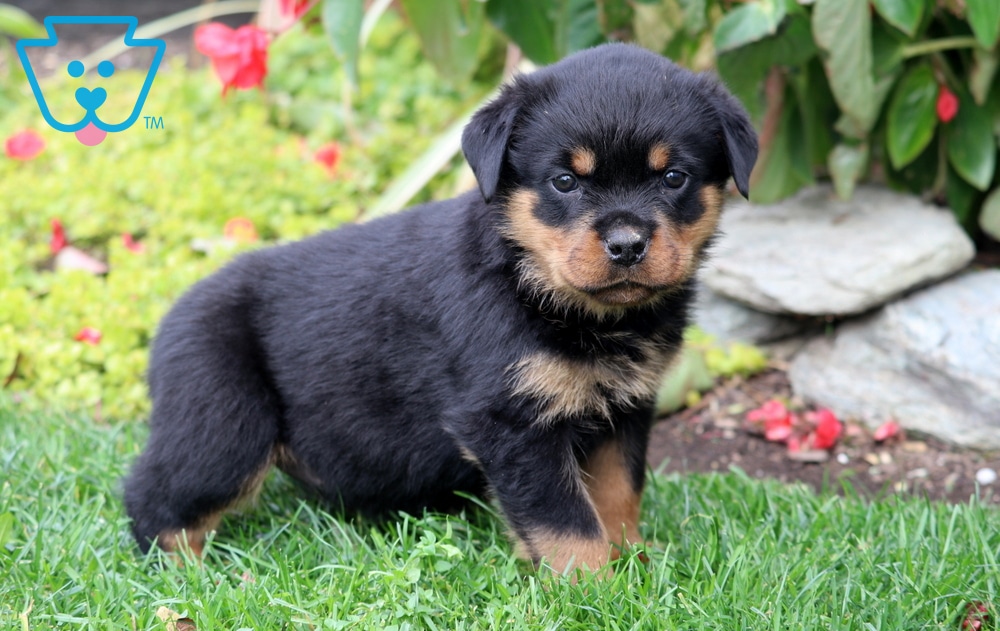 Sophie is a sweet and gentle Rottweiler with a big heart and an even bigger smile. She’s wonderfully social and loves being around people, especially kids! This cutie is AKC registered, vet checked, vaccinated, wormed, plus the breeder provides a 1 year genetic health guarantee. Her parents are Darla Mae (110lbs.) & Rocky (115lbs.). Sophie makes the perfect companion for families looking for a loyal and affectionate friend.