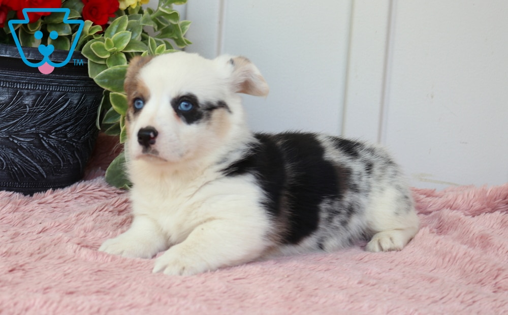 Rosie is a beautiful Welsh Corgi with a big personality packed into her short, sturdy frame. She’s incredibly social and thrives on being around people especially kids. This cutie is ACA registered, vet checked, vaccinated, wormed, plus the breeder provides a 1 year genetic health guarantee. Her parents are Pansy (30lbs.) & Windcrest Yapper. Rosie brings energy and joy wherever she goes.