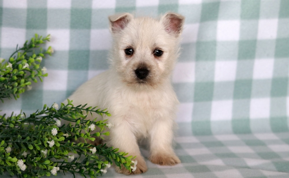 Comet is a stunning West Highland Terrier with a bright, bubbly personality to match his adorable looks. He’s social as can be and absolutely loves being around people, especially children. Comet is vet checked, vaccinated, wormed, plus the breeder provides a 1 year genetic health guarantee. His parents are Stella (17lbs.) & Charlie (19lbs.). He makes a wonderful companion for a fun-loving family.
