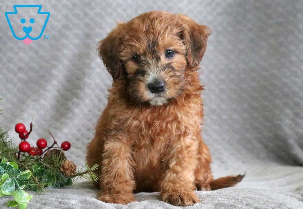 Raz is a delightful Mini Whoodle puppy with a very social personality and a love for people. He has been raised with children, is well-adjusted, and will make a wonderful companion for a fun-loving home. This love-bug is vet checked, vaccinated, wormed, and comes with a 1 year genetic health guarantee that is provided by the breeder. His parents are Sara (Mini Whoodle – 22lbs) & Toby (Mini Whoodle – 22lbs). With his happy spirit and people-loving personality, Raz is ready to bring laughter, cuddles, and companionship to his forever family.