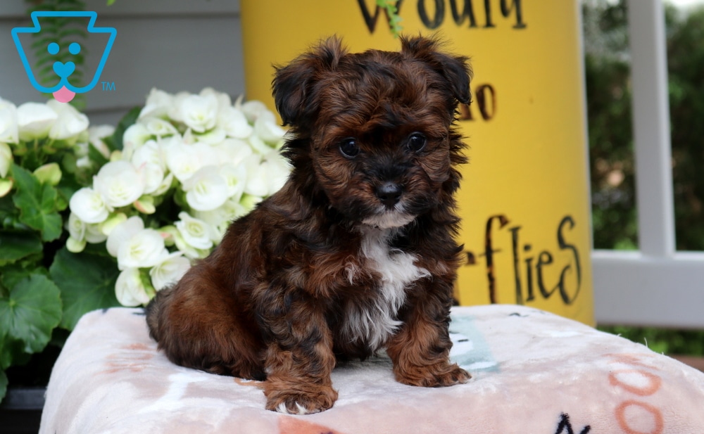 Scooter is an adorable Yorkiepoo with a big personality packed into a small, fluffy body. He’s incredibly social and thrives on being around people, especially kids, who instantly become his favorite playmates. This little guy is vet checked, vaccinated, wormed, plus the breeder provides a 1 year genetic health guarantee. His momma is a Yorkiepoo (Twila – 8lbs.) & daddy is a Toy Poodle (Mikey – 4lbs.). Scooter loves to cuddle up and soak in all the attention he can get.
