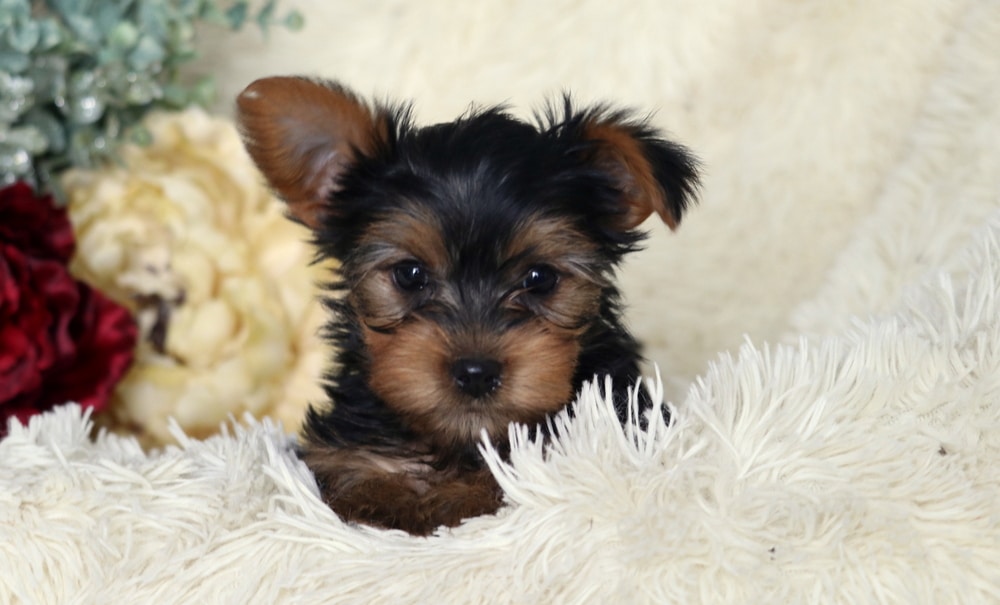 Tavy is an absolutely adorable Yorkshire Terrier with a big personality packed into a tiny, lovable frame! This sweet little girl is super social and thrives on attention, happily making friends wherever she goes. Tavy is ACA registered, vet checked, vaccinated, wormed, 1 year genetic health guarantee. Her parents are Madison Rayne & Jaxon Micheal. She’s playful, curious, and always ready to be the center of the fun!